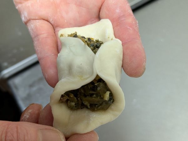 整列です!かわいい~!!男の子は皮膚がデリケートだったようで(薄かった)、顔面きずだらけの可哀そうなことになってしまいましたが(汗)、兎にも角にも楽しかったから大満足!「砂ずりと春雨の冷菜まん」は蒸しあがってから具を詰めてくれますよ。