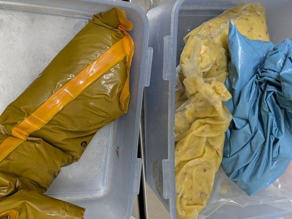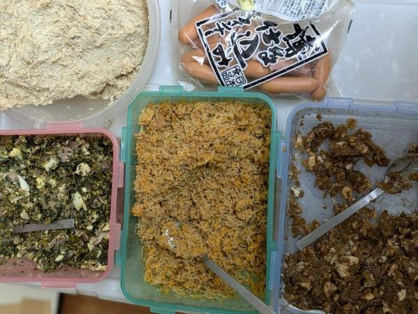 甘い系以外は全部食べたことがあって、どれも大好きなのでどの具にしようか迷っていたら、なんと!「具について店にある具、角煮以外全部使っていいです。」とのこと!お惣菜系の5種類を2個ずつ作ることに決めました。 早速生地とご対面。(ここまでは準備してくれています)小さめの中華パン10個分の生地と、飾り用の3色の生地。因みに着色は、紫芋・人参・ココアと自然由来のものを使用しています。