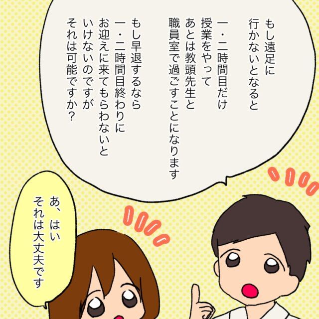 「もし遠足に行かないとなると、一・二時間目だけ授業をやって、あとは教頭先生と職員室で過ごすことになります。