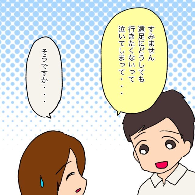 「すみません。遠足にどうしても行きたくないって泣いてしまって・・・」