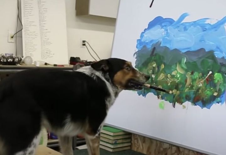 3. これを犬が描いたとは!絵の才能がある犬さん、楽しそうにお絵かき。