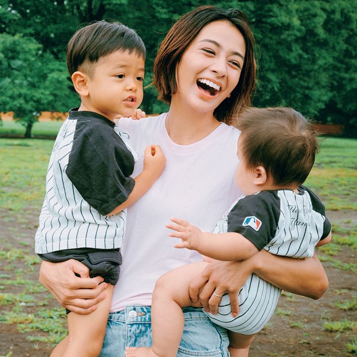 「いつもニコニコ癒しの次男。離乳食が始まって大変なこともあるけれど、食べる姿も可愛すぎて。ハイハイができるようになったら、さらに自然の中でのびのび遊ばせるつもり。子どもたちには、小さいことを気にせずなんでもチャレンジしてほしい。遊びからもそんなマインドが培われたらな、と思っています」