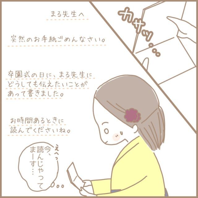 以前長文のクレームの手紙をもらったなっちゃんのお母さんから手紙を受け取ったまるちゃん先生は、卒園式直前でしたが内容が気になりすぎて手紙を読んでしまいました。