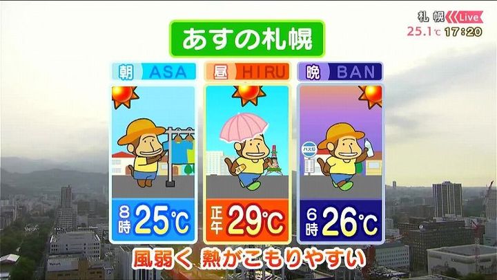 気温は今日と同じか高め。札幌は30度の真夏日。根室でも26度の夏日になるでしょう。