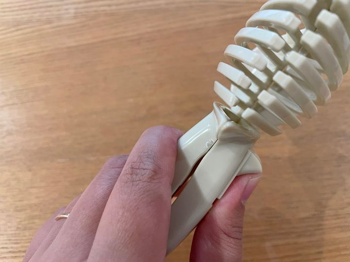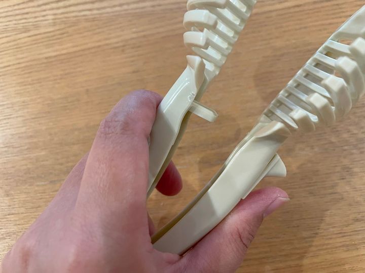 強く握りすぎるとつぶれてしまいそうなので、固定できる程度の力加減で挟みます。