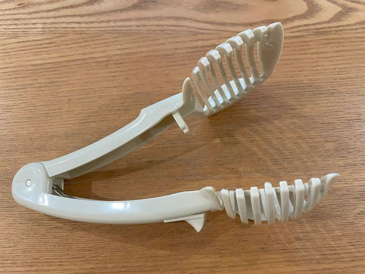 持ち手を握って食材を挟んでカットするだけなので、丸い食材が転がって指を切ってしまう心配もありません。
