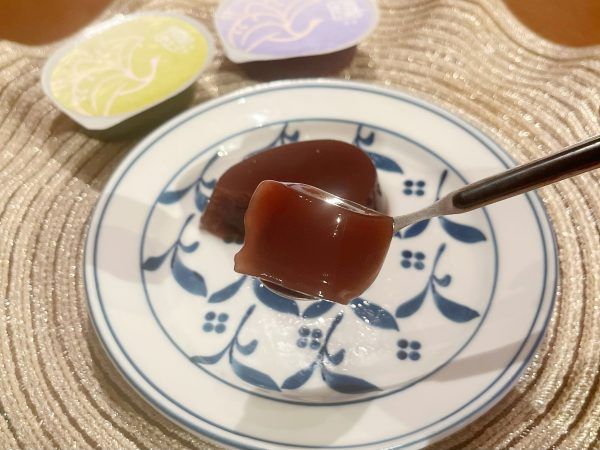 原料の蕨粉はワラビの根10㎏から、たった70gしか取れない大変貴重なものなのだとか。その蕨粉を活かしながら、職人が炊き上げた優しい甘さの餡と合わせていけば、ぷるんぷるんな新食感が楽しめる水ようかんのような、ゼリーのようなスイーツに。