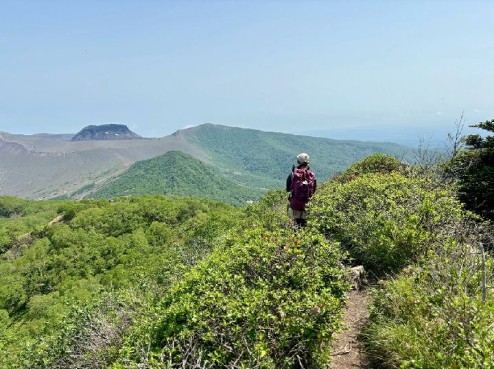 風不死岳の山頂から樽前山までは、約1時間半。