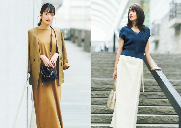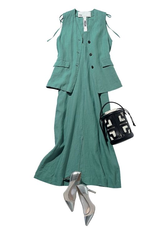 ジレ¥26,400、キャミワンピ¥31,900/ともにティッカ バッグ¥15,400、パンプス¥19,250/ともにダイアナ(ダイアナ 銀座本店)