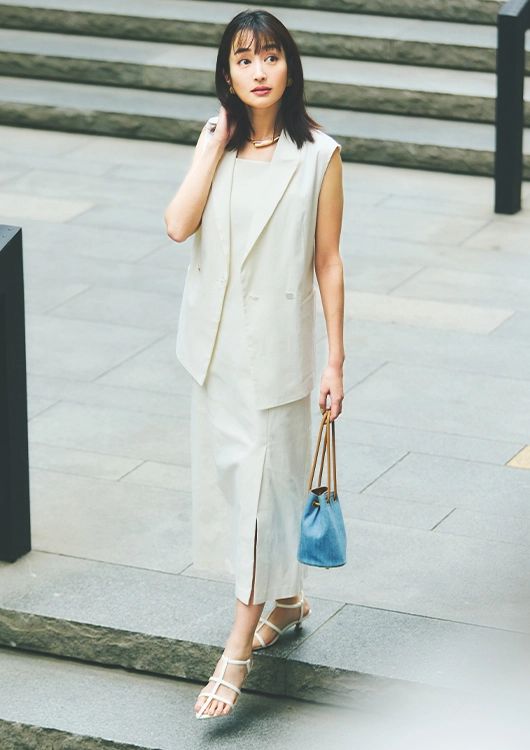 テーラードジレ×スリットワンピが一歩先ゆくクラス感を発揮!