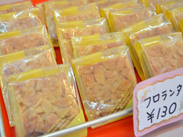 ブランデーに漬け込んだドライフルーツが味わえる「フルーツケーキ」(130円)や、チョコチップたっぷりの「チョコパウンド」(130円)、アーモンドが香ばしい「フロランタン」(130円)は、比較的日持ちがするのでお持たせにもいいですね。