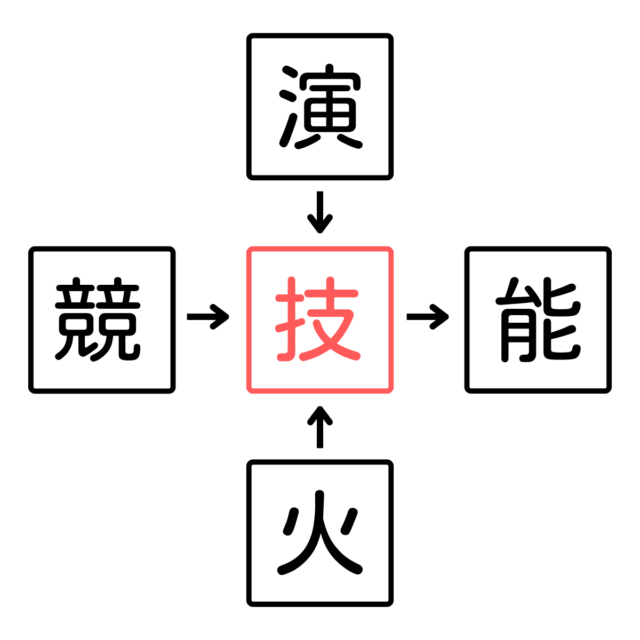 空白に4つの漢字に共通する漢字を入れて、熟語を完成させてみて!