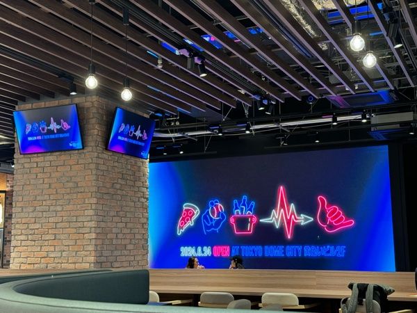 フードホール『FOOD STADIUM TOKYO(フードスタヂアムトーキョー)』内はLEDビジョンや多数のモニターでスポーツやエンタメを楽しみながら多種多様なグルメを楽しめるフードコートです。