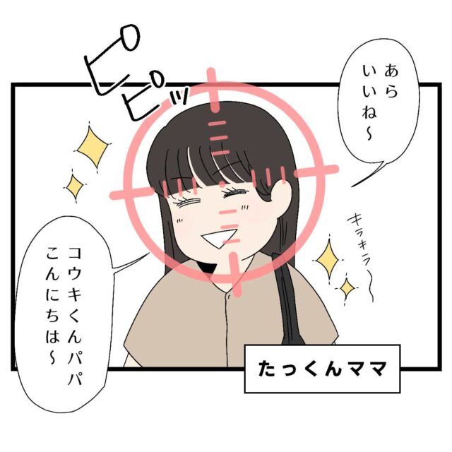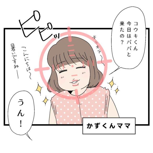 コウキくんと一緒にみんなのところへやってきた信也さんの視線は、かずくんママにピピッ。