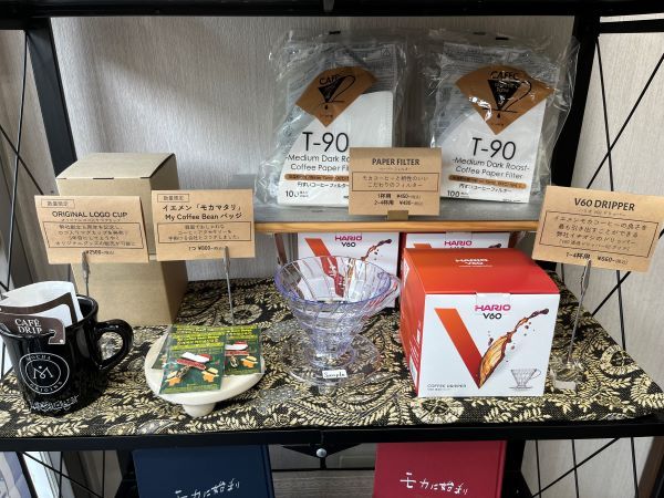 おうちで美味しいコーヒーを淹れるお手伝いをしてくれるグッズですね。マグカップやピンバッジもあります
