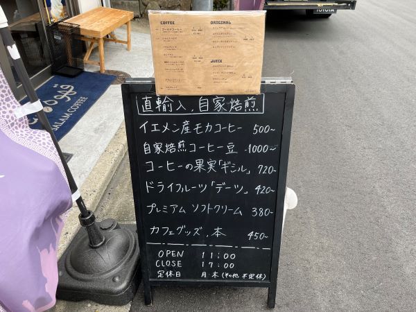 店内に入る前にメニューがありますので、何にしようかと悩みました。コーヒーは飲んでみたい! と考えながら店内へ