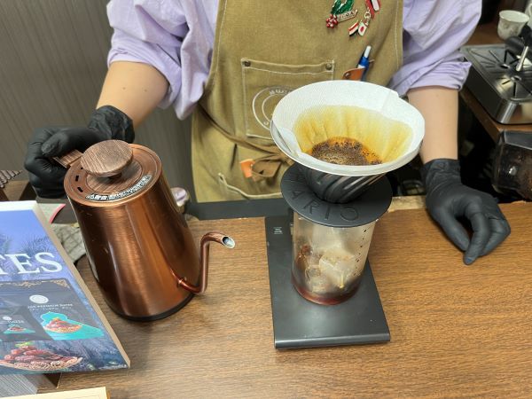 オーダー後は目の前のカウンターでアイスコーヒーを淹れてくださいます。