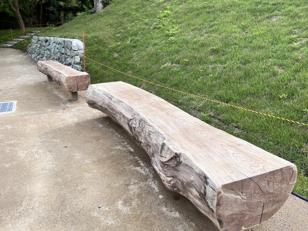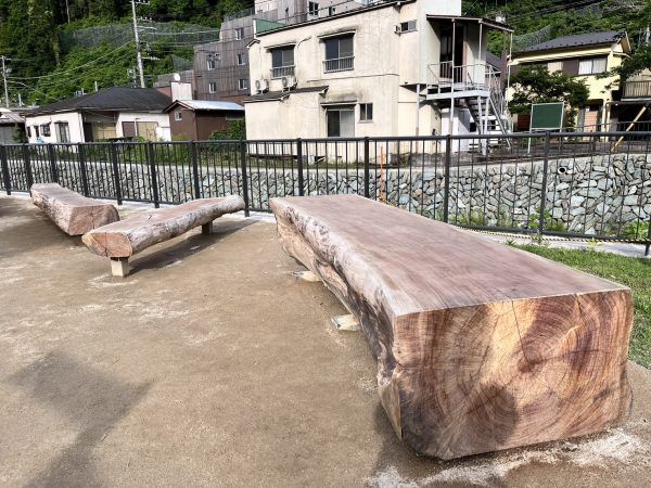 コチラの公園には立派な丸木のベンチがたくさん設置されています。