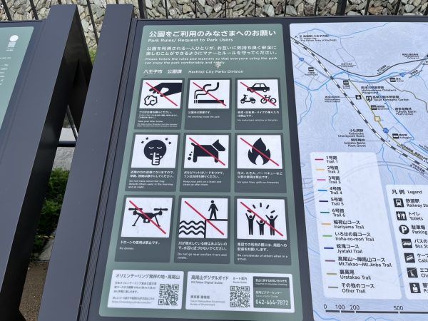 そのため、高尾山のコースも記載されている地図も設置されています。