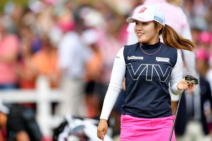 【渋野日向子プロ】レトロな5分袖モックネックシャツが新鮮!