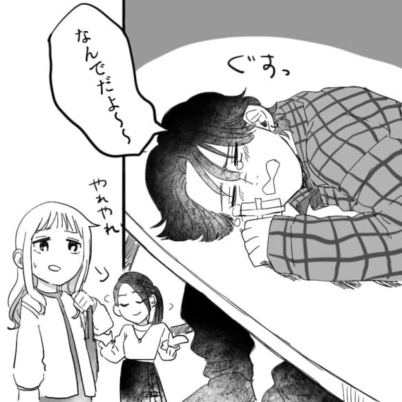 主人公がゼミ室に入ると、友だちのサキが怒っていました。