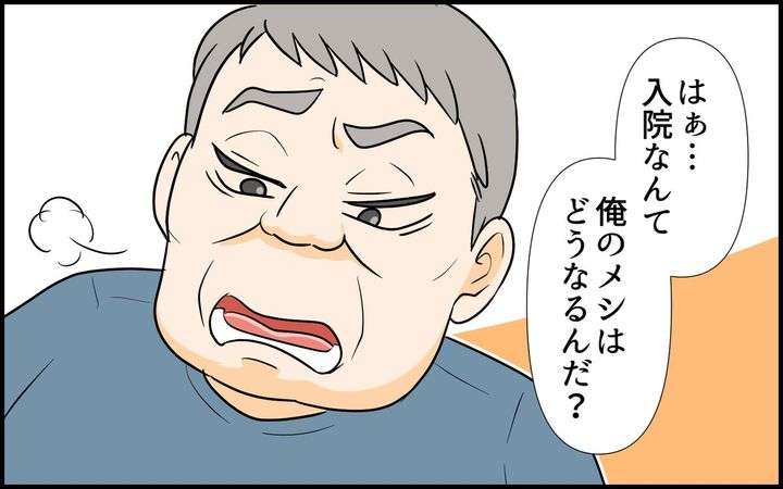最後に、入院することになった義母の心配より、自分のご飯を心配する義父への批判です。