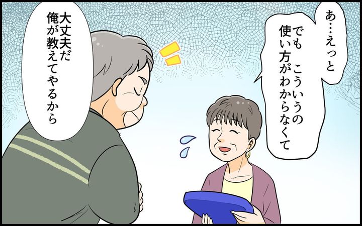 義両親とは、スープの冷めない距離に住んでいる瑞希。義母は優しく控えめですが、義父のことは正直苦手でした。義母の古希の祝いに義父は工具セットを贈り「家の修理が楽になるだろ」と得意げ。義母はDIYに興味があるわけではなく…。