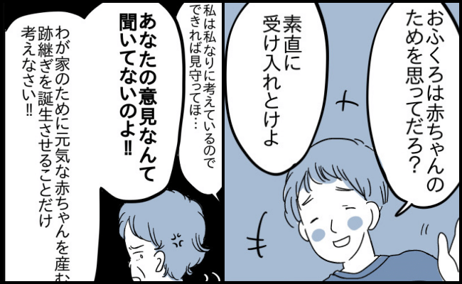 「跡継ぎを産むことだけ考えなさい!」妊娠判明後、義母の態度が急変!?→過干渉に悩んだ私は