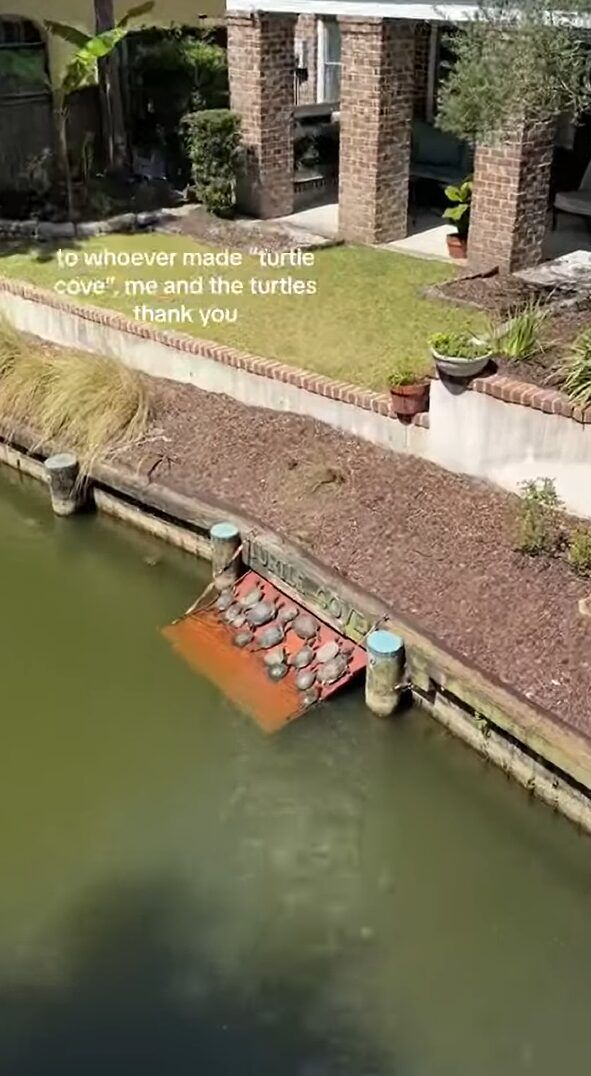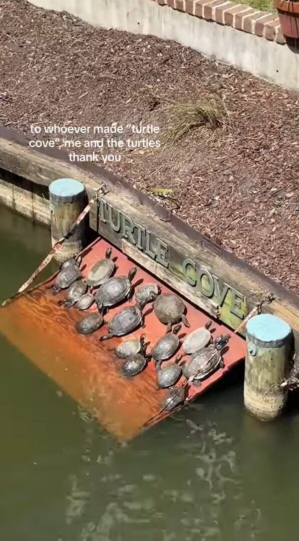 日当たり抜群で最高?カメたちに人気の甲羅干しスポットを発見!!【海外・動画】