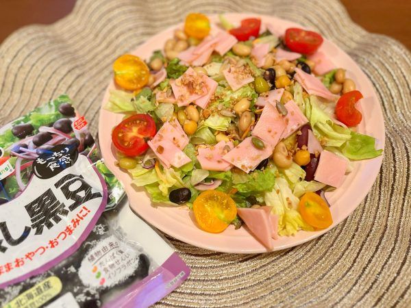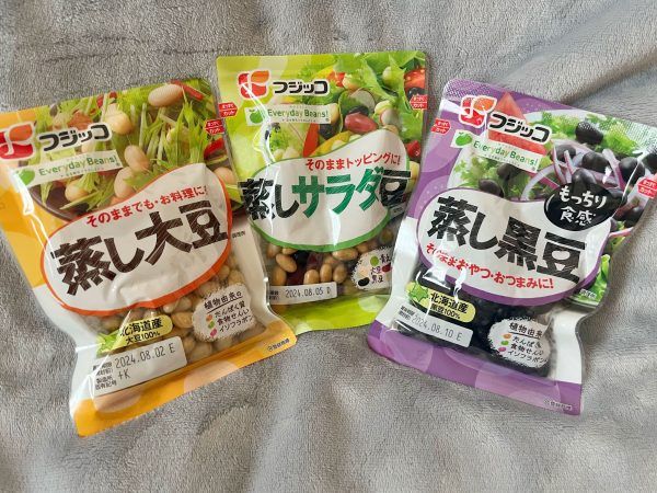 使ってみたら、意外にもとっても便利だったのがフジッコの蒸し豆シリーズ。料理にプラスするだけでボリュームがアップするし、手軽にたんぱく質が補えます。蒸しサラダ豆、蒸し大豆のほか、一番好きだったのがもっちり食感の蒸し黒豆。黒豆が甘くなくてもおいしいのは新しい発見でした!