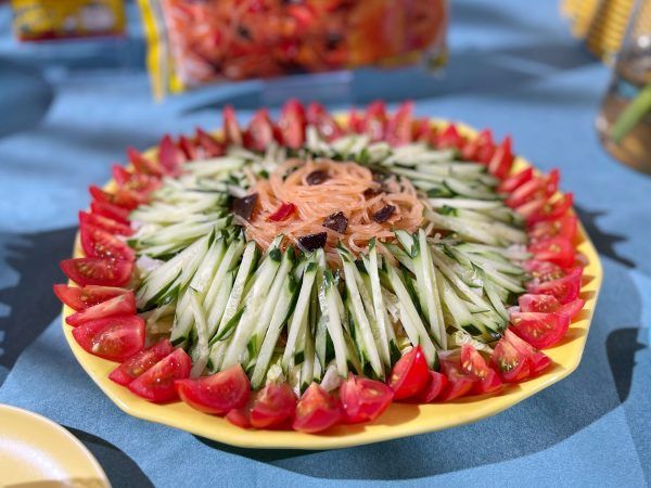 1の方法で作ったきゅうりとトマトを切ってのせただけの「冷やし麻婆春雨サラダ」は冷やし中華みたいで、さっぱりと食べられます。豚しゃぶなどをのせてボリュームアップすれば、子どももモリモリ食べてくれました。