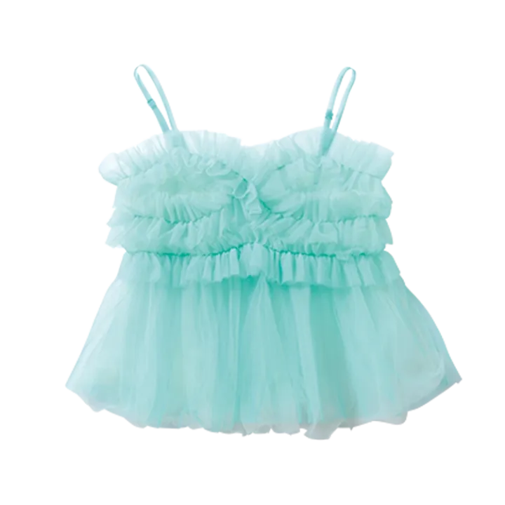 爽やかなミントニットをレイヤードしたコーデ。小物は白のアイテムで統一して涼しげに♡