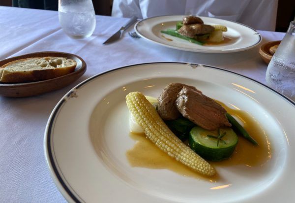 お肉の付け合わせの野菜も地元で採れたもの。大きいヤングコーンはプリッとしていて美味しかったです。