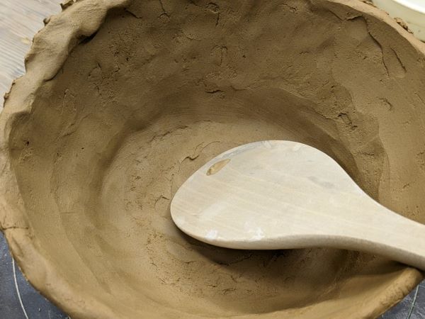 側面を平らにならしたら、底面も木べらで整えていきます。そして、好みの形に手で整えていきますよ。