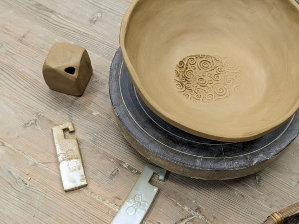 そして、余った粘土で一輪挿しも作れちゃいました!角に刺し口があるお洒落なデザインをアドバイスしてくださって、それに決めました♪