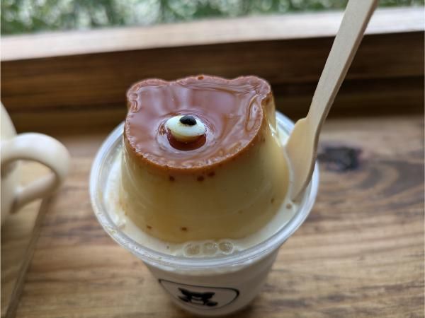 なんとかわいいプリン… くまさんをかたどったプリンは、しっかりめのかたさでとってもおいしかったです。