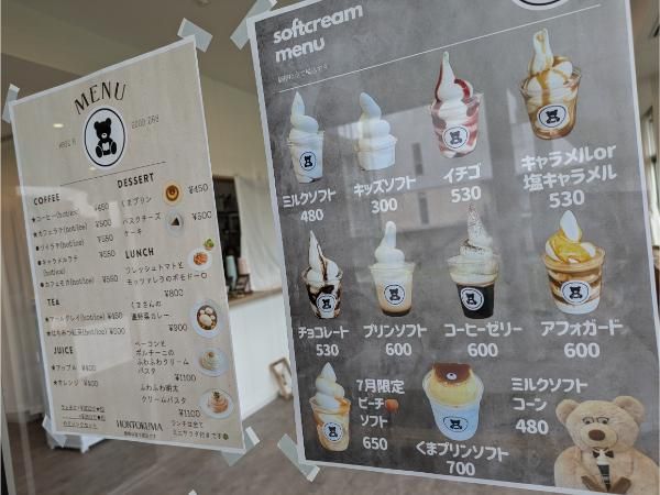 メニューはドリンクやデザートのほかにランチメニューもあり、4種類の中から選べます。 選べます!とは言ったものの、なかなか選べない…。ソフトクリームの写真を目にするとますます迷います。