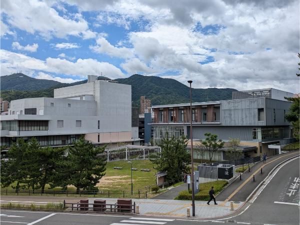 左の建物は黒崎ひびしんホール 右の建物が八幡西図書館です