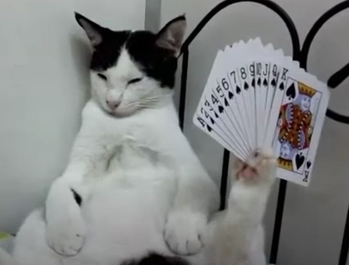 猫とババ抜き出来そう。寝ている隙にトランプを持たせてみた!