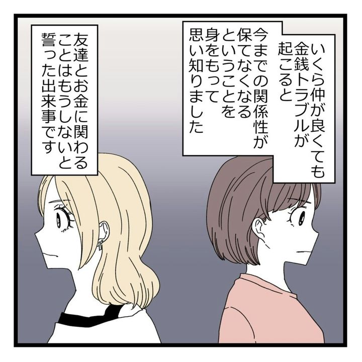 はに子さんは金銭が絡むことでY子さんにうそをつかれ続け、最終的には2人の間に亀裂が生じてしまいました。一度失った信頼を取り戻すことは容易ではありません。『ママ友に半年間騙されていた話』は、金銭が絡んだ際に見える、人間性についても考えさせられるお話です。