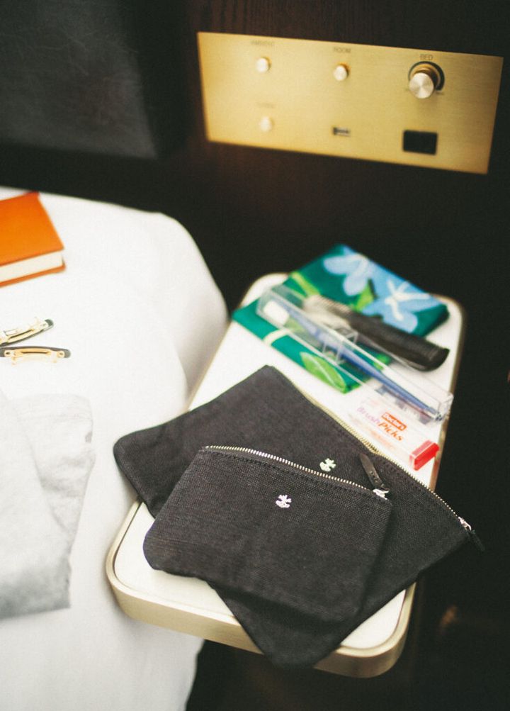 旅のパッキングには、同じデザインでサイズ違いのポーチがあるといい。でもそれだけじゃもったいないから、普段も使えるようにと〈アーツ&サイエンス〉のシンプルなものを手に入れた。生地はリネン100%で、2種類の糸を高密度に織り上げていてへたりにくいのがいい。Sサイズはコード類やカードなどをしまうのに、Mサイズはコスメなどの小物を入れるのにちょうどいい。S[W14.7×H9.8㎝]¥8,800、M[W21.7×H15.6㎝]¥11,000(ともにアーツ&サイエンス代官山 03−5784−3803) その他スタイリスト私物
