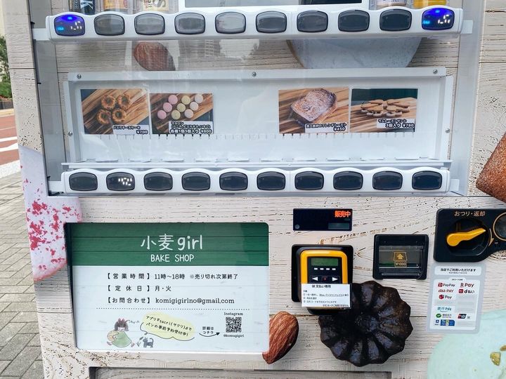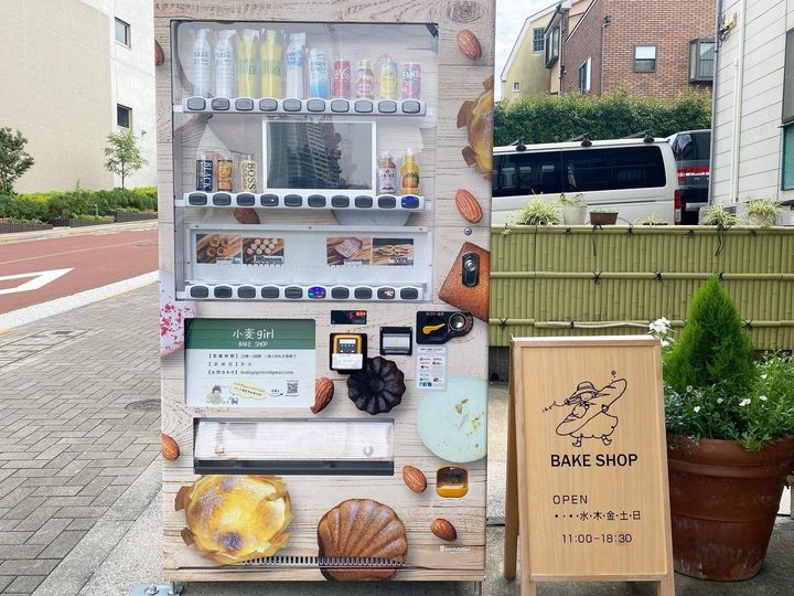 小麦girl(小麦ガール)のお店の外に、もうひとつ気になるものを発見!パンと焼き菓子の自動販売機です。