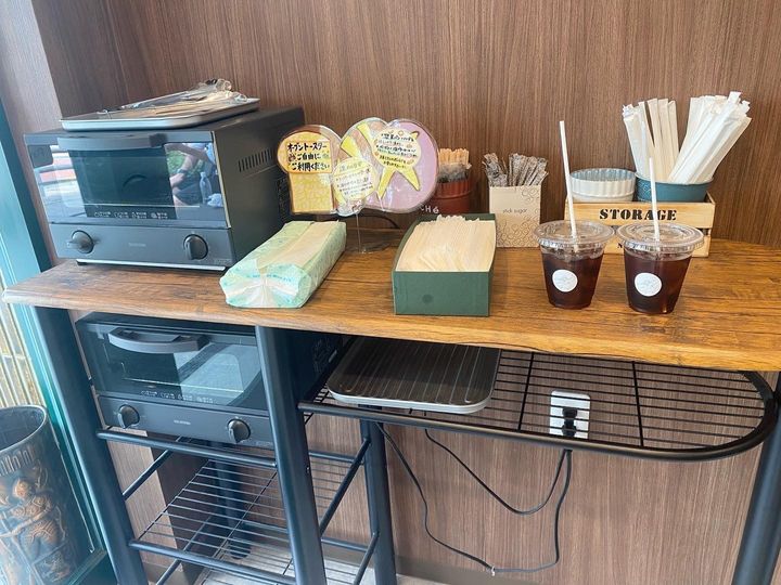 店内には、オーブントースターやおしぼりが設置してあり、お店側の気遣いがうかがえました。お店の方もとても親切で、パンを注文すると取り分けてくださいます。