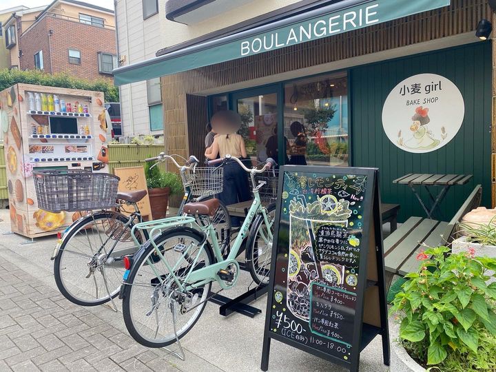 『小麦girl』は、大崎駅から徒歩5分ほどの場所にあるパン屋さんで、2023年11月にオープンしました。周囲は自然が豊かで、駅からお散歩するのがとても気持ちよかったです。お昼頃に訪れると、徒歩や自転車で次々とお客さんが訪れていました。自転車は3台まで駐輪できます。