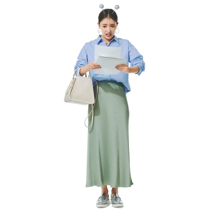 給料から引かれている、あれやこれやの多さに衝撃が走る。社会の一員として税金を払うことは納得できるけど、引くほど高い…国民が汗を流して働いた税金、無駄遣いしたら許さんぞ。驚きと怒りで、思わず触角が出ちゃった。冷や汗をかいても、接触冷感素材のブルーシャツなら清涼感〜!バッグ¥94,600(ロンシャン/ロンシャン・ジャパン)イヤリング¥29,700(ケンゴ クマ プラス マユ/ヴァンドームヤマダ)