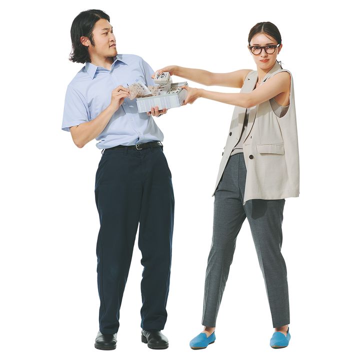 「宮本さん、いただいたお菓子配ってきて。 女子が率先してやるもんだよ」と部長。 女子が?率先して?この国の女のコの役割って、 一体?コタロウくん、君も一緒にやってくれる?