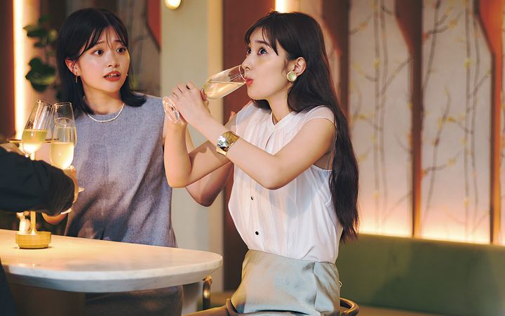 くぅ〜、んまい!仕事後わりに仲間と飲むビールと老舗町中華の美味しい餃子…地球にも守るべきものが!普段は隠していても心が震えるとニョキッと飛び出してしまう頭の触角。まぁ一ふたりとも餃子に夢中で見てないから問題なし!バッグ¥13,200(トラディショナル ウェザーウェア/トラディショナル ウェザーウェア ルミネ有楽町店)イヤリング¥6,820(イットアトリエ/フォーティーン ショールーム)ネックレス¥121,000(マリハ)[東さん]ブラウス¥14,960(アンクレイヴ スタンダード/オンワード樫山)パンツ¥18,700(マイカ アンド ディール/マイカ アンド ディール恵比寿店)パンプス¥22,000(銀座かねまつ/銀座かねまつ6丁目本店)イヤリング¥8,250(カリーヌサルタン/ココシュニック新宿タカシマヤ店)