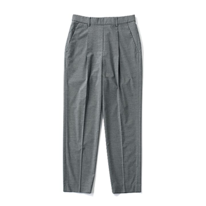 すっきりしたテーパード×センタープレスで、脚をまっすぐ見せてくれる名品。パンツ¥6,490(オリヒカ/オリヒカ池袋東口店)