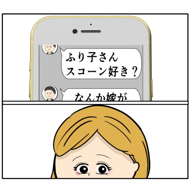 必死な良し男さんのメッセージを見たふり子さんは、ニッコリ微笑んでいました。