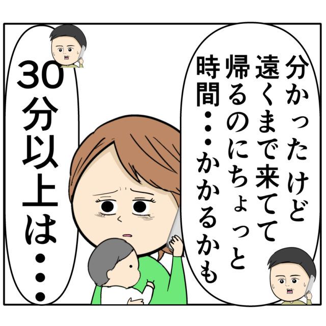 「分かったけど遠くまで来てて帰るのにちょっと時間・・・かかるかも、30分以上は・・・」
